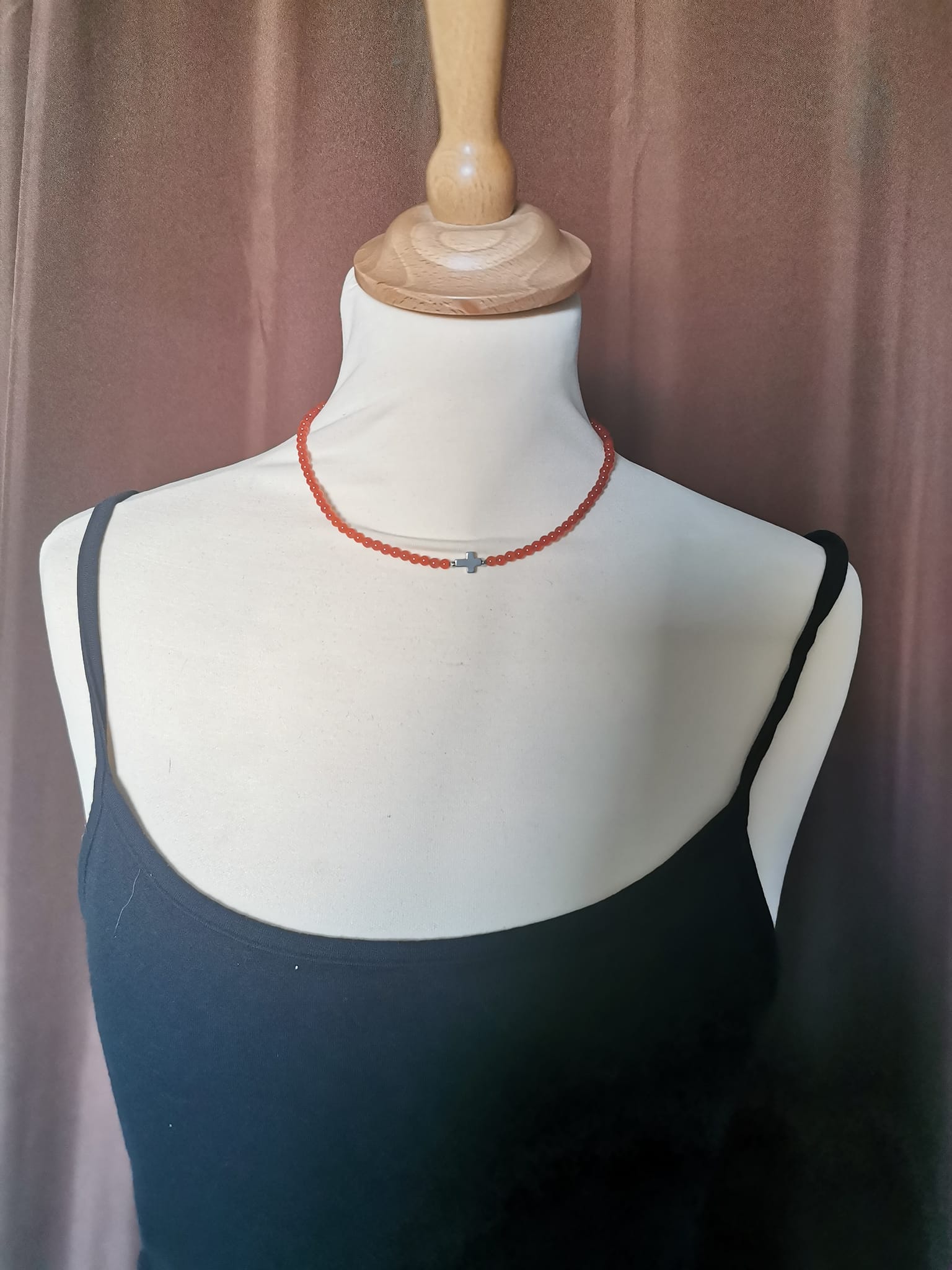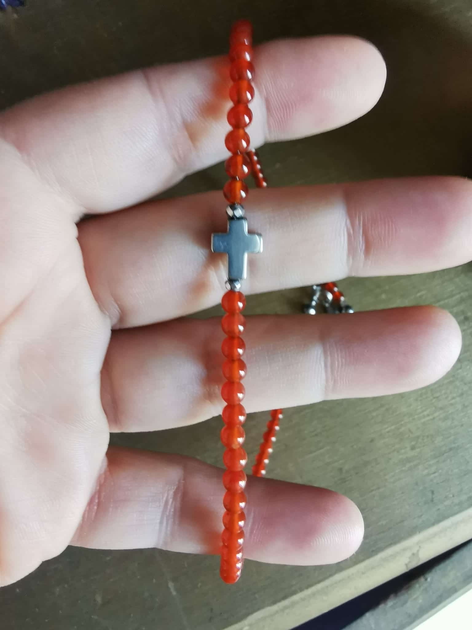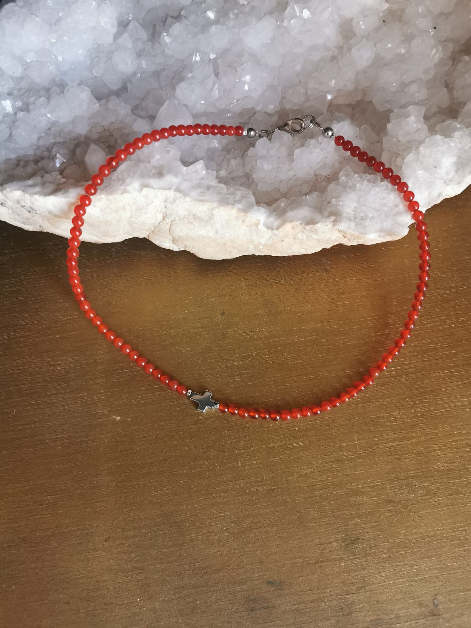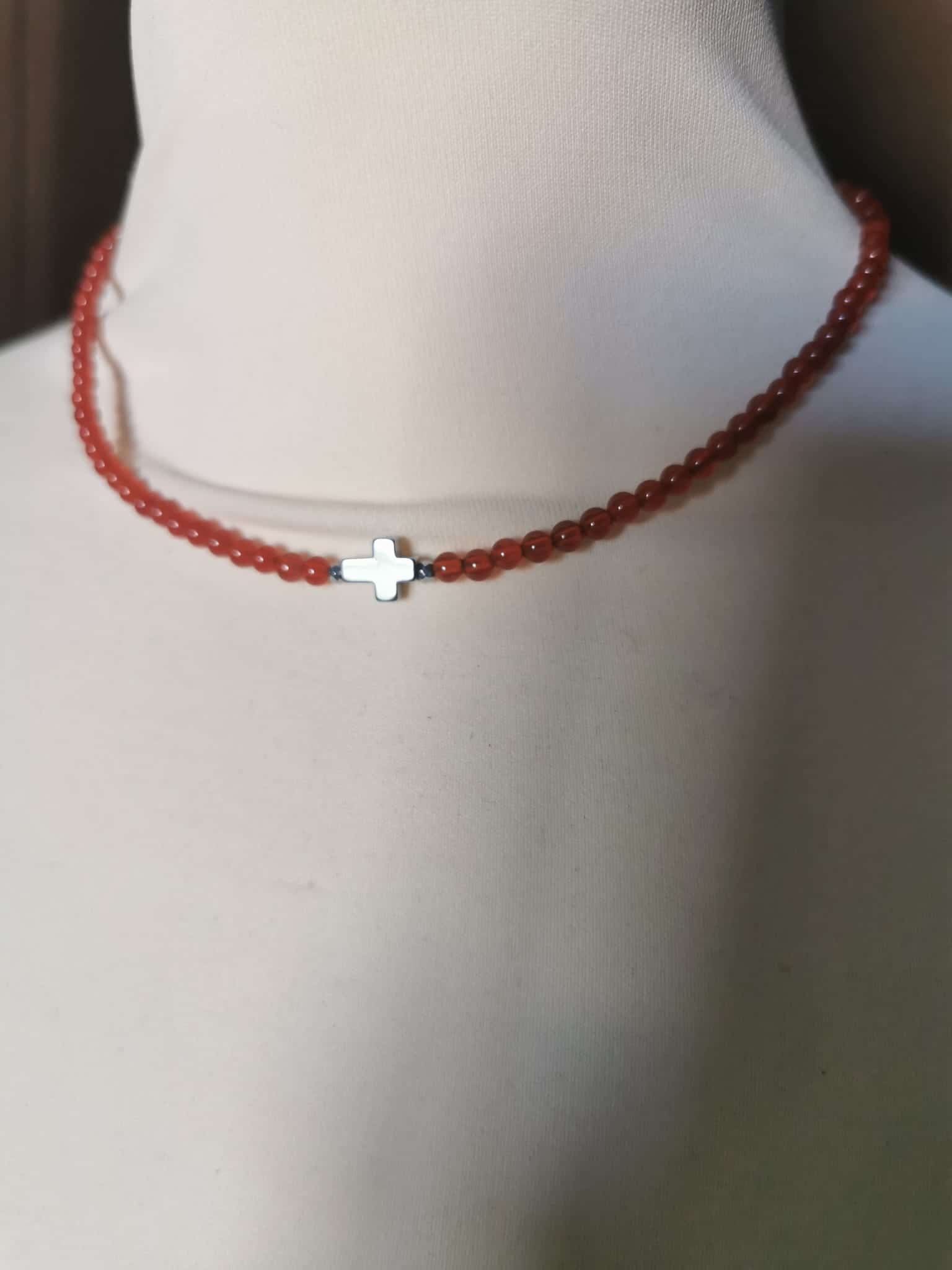 ❤️ Collier en Cornaline et sa croix en Hématite 💎