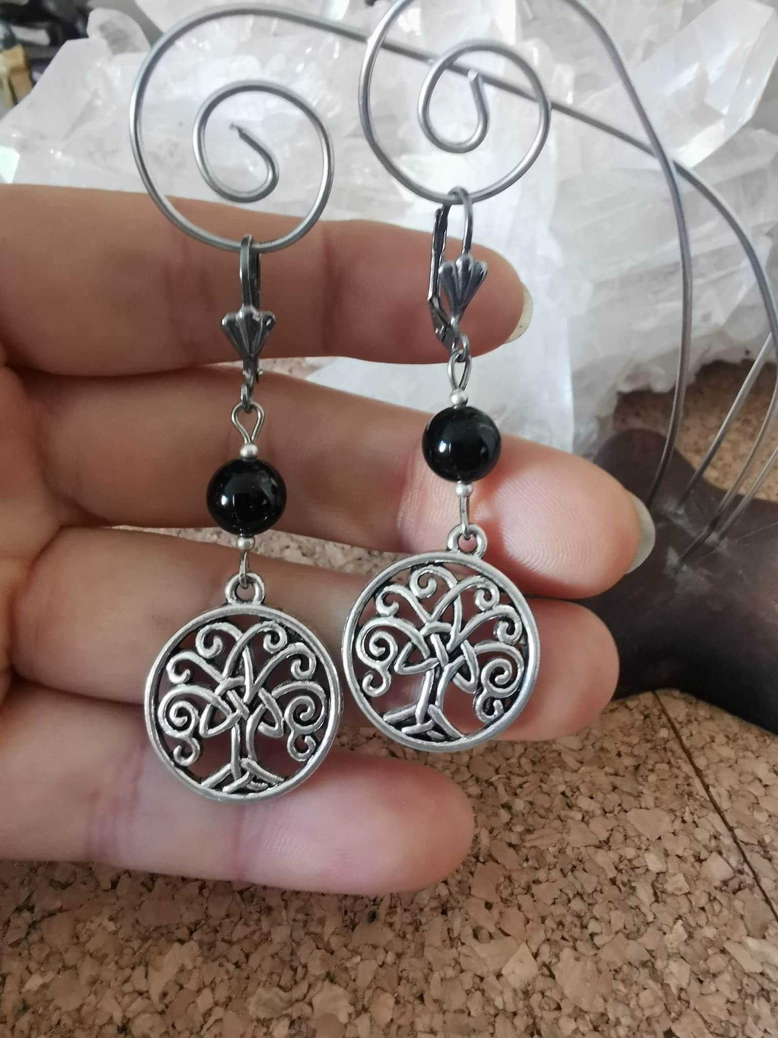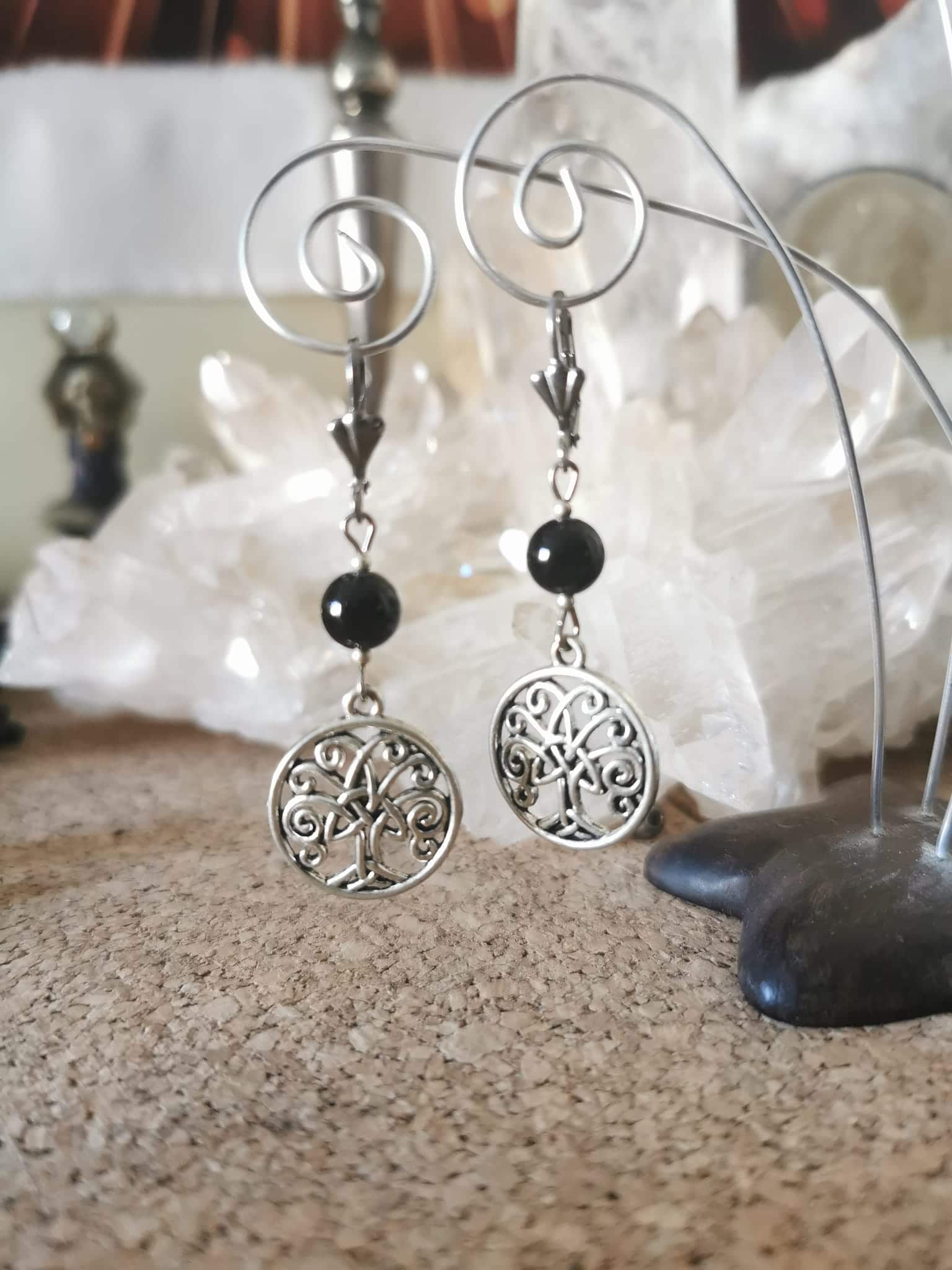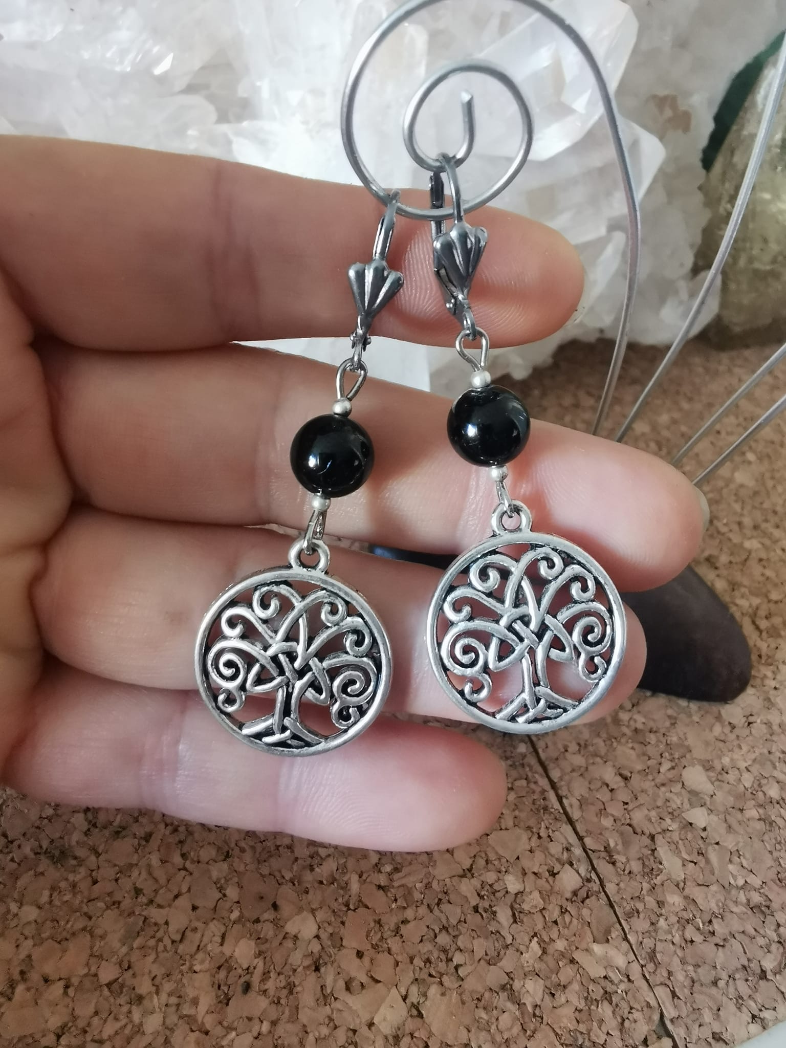 Boucles d’oreilles en Spinelle Noir et son Arbre de Vie ![]()