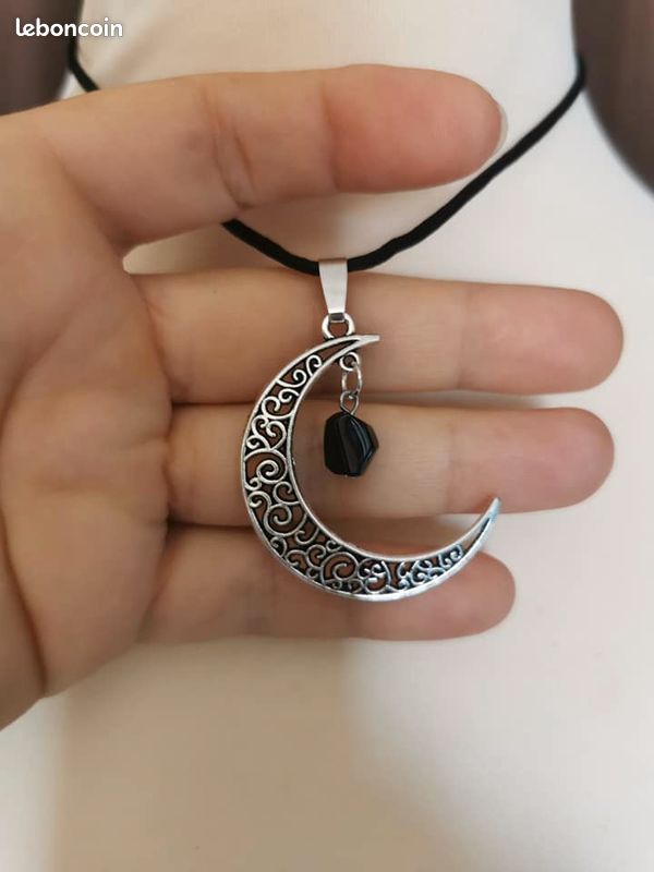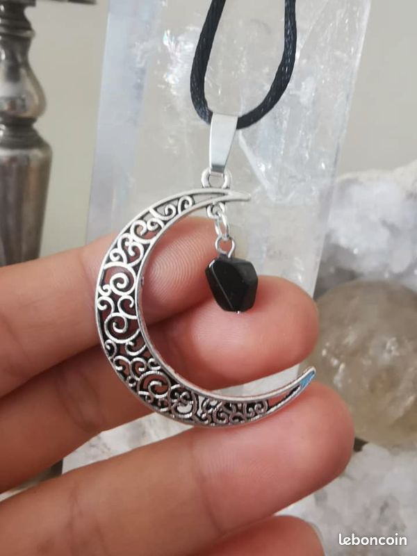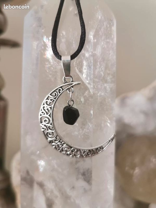 ❤️COLLIER LUNE et son SPINELLE NOIR🔹