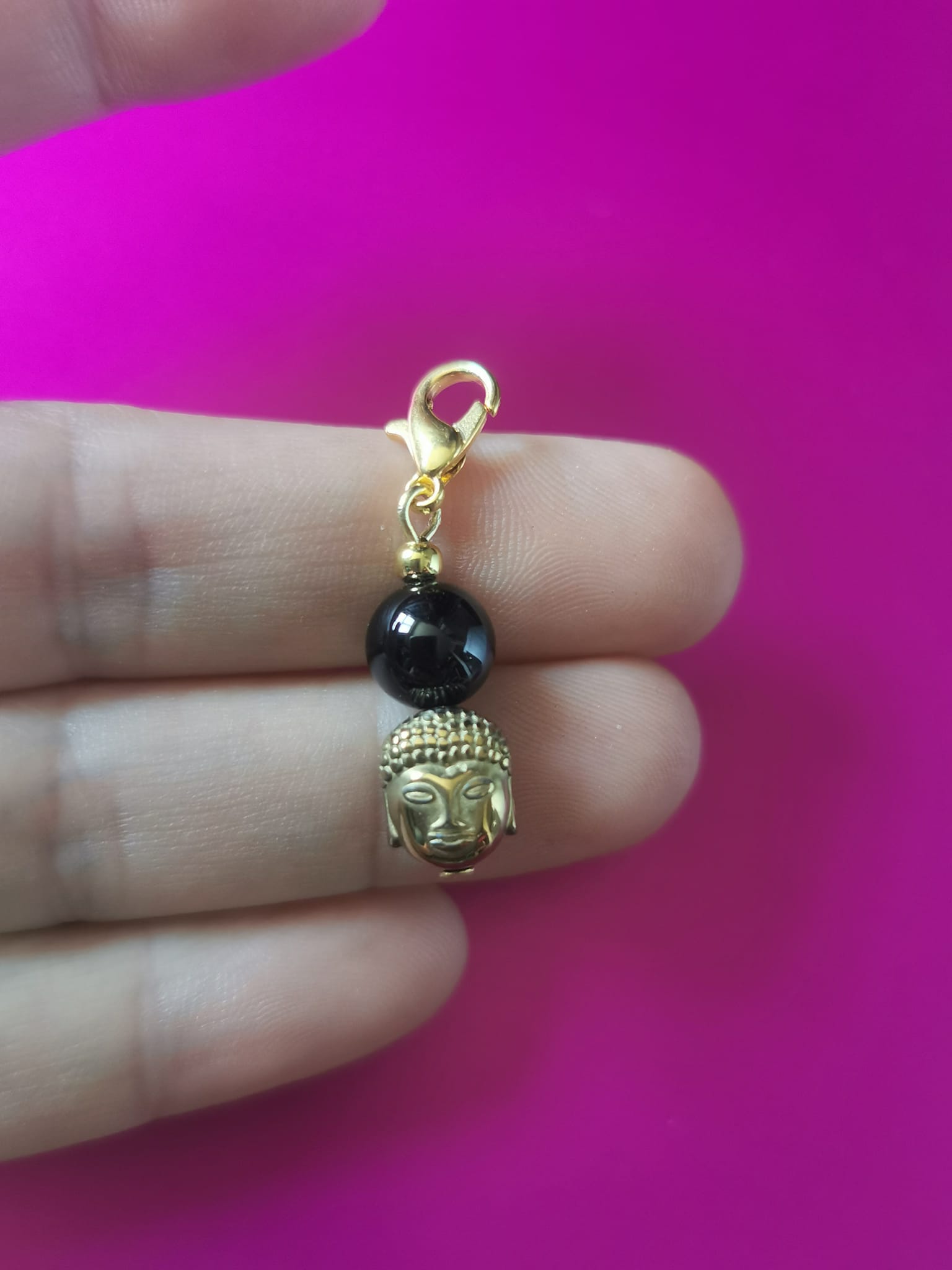 ❤️ Pendentif en Spinelle Noir et Bouddha en Hématite dorée   🔹