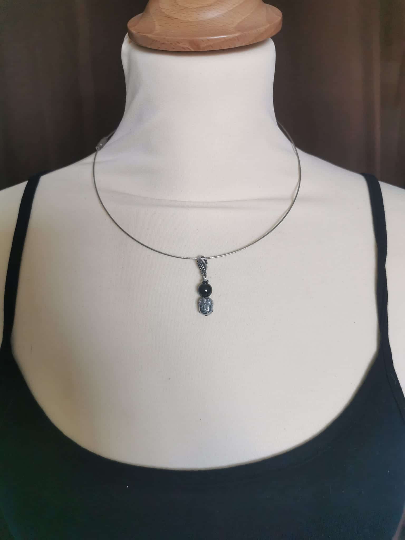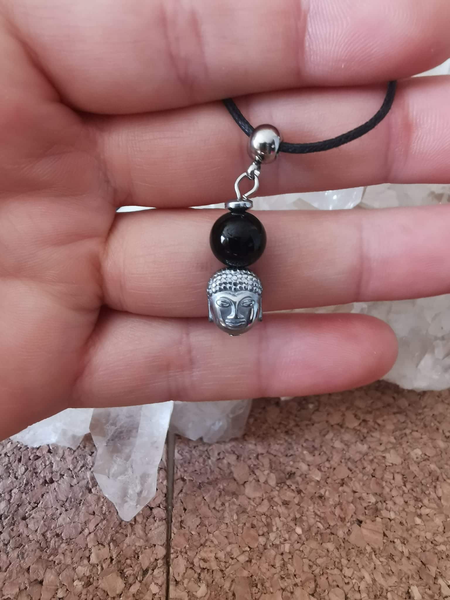 ❤️Collier en Spinelle Noir et Bouddha en Hématite 🔹