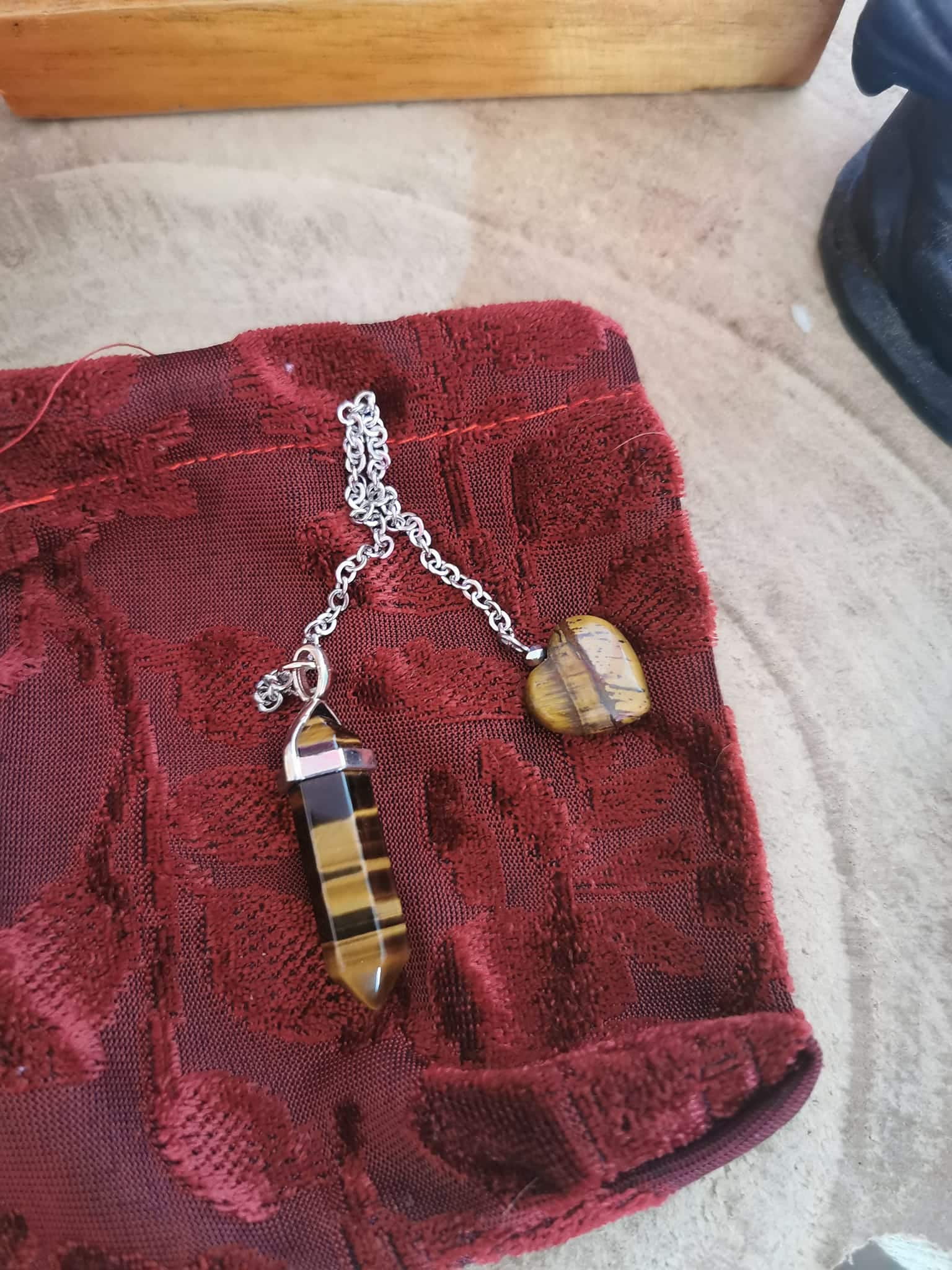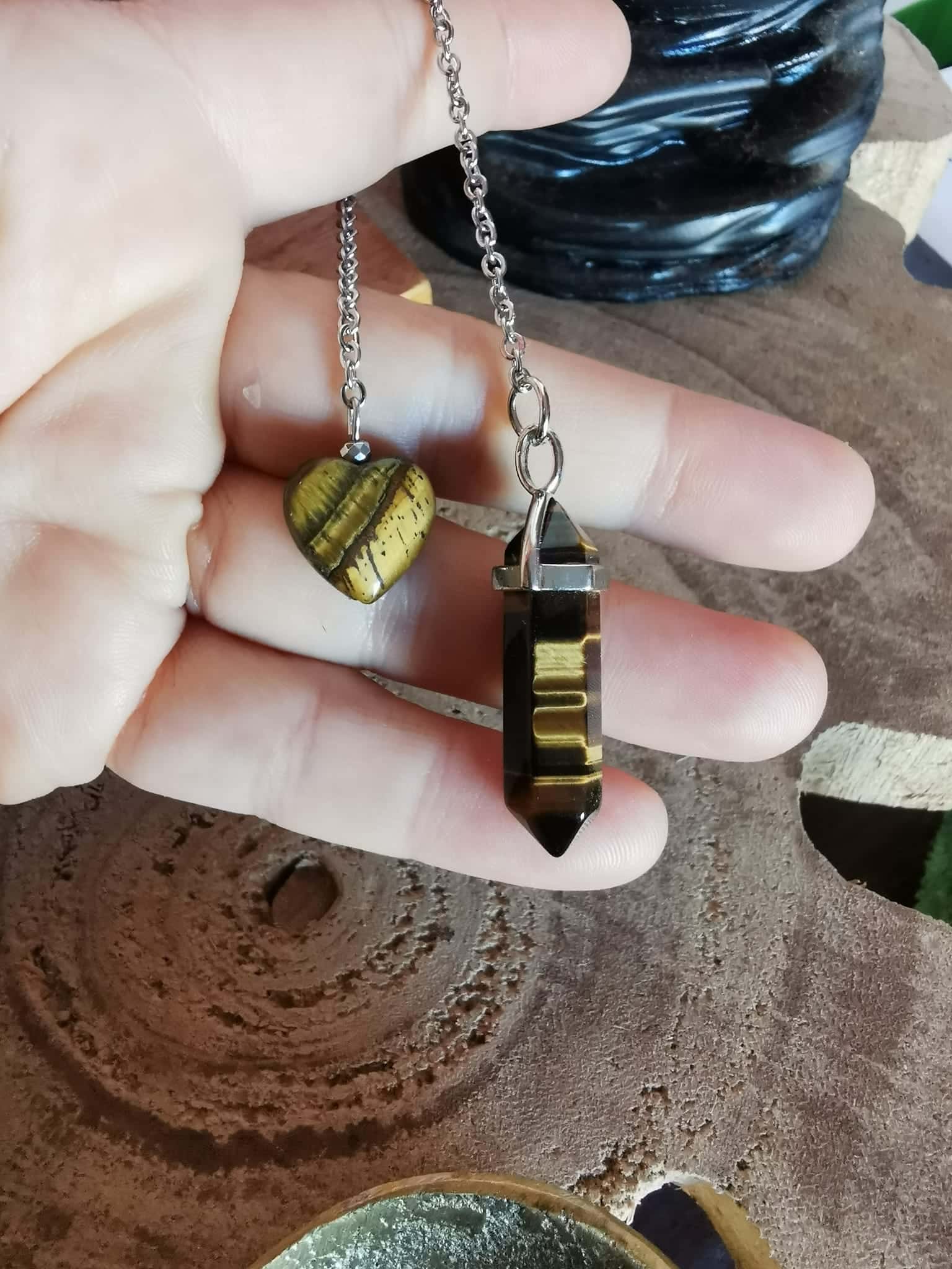 Pendule pointe bi-termine et son petit Coeur en Oeil de Tigre