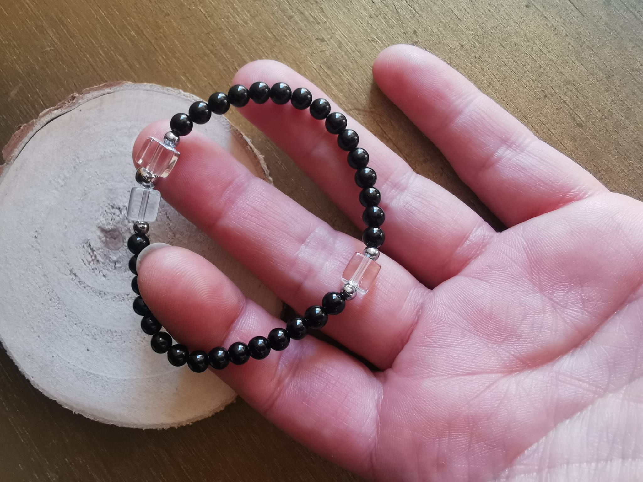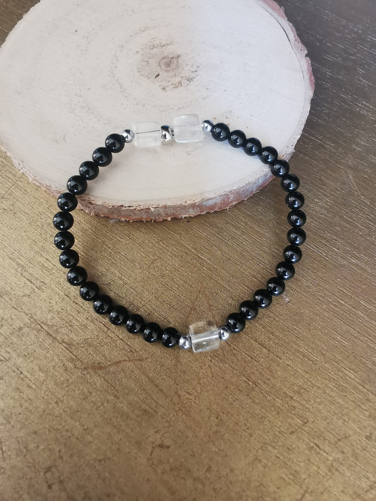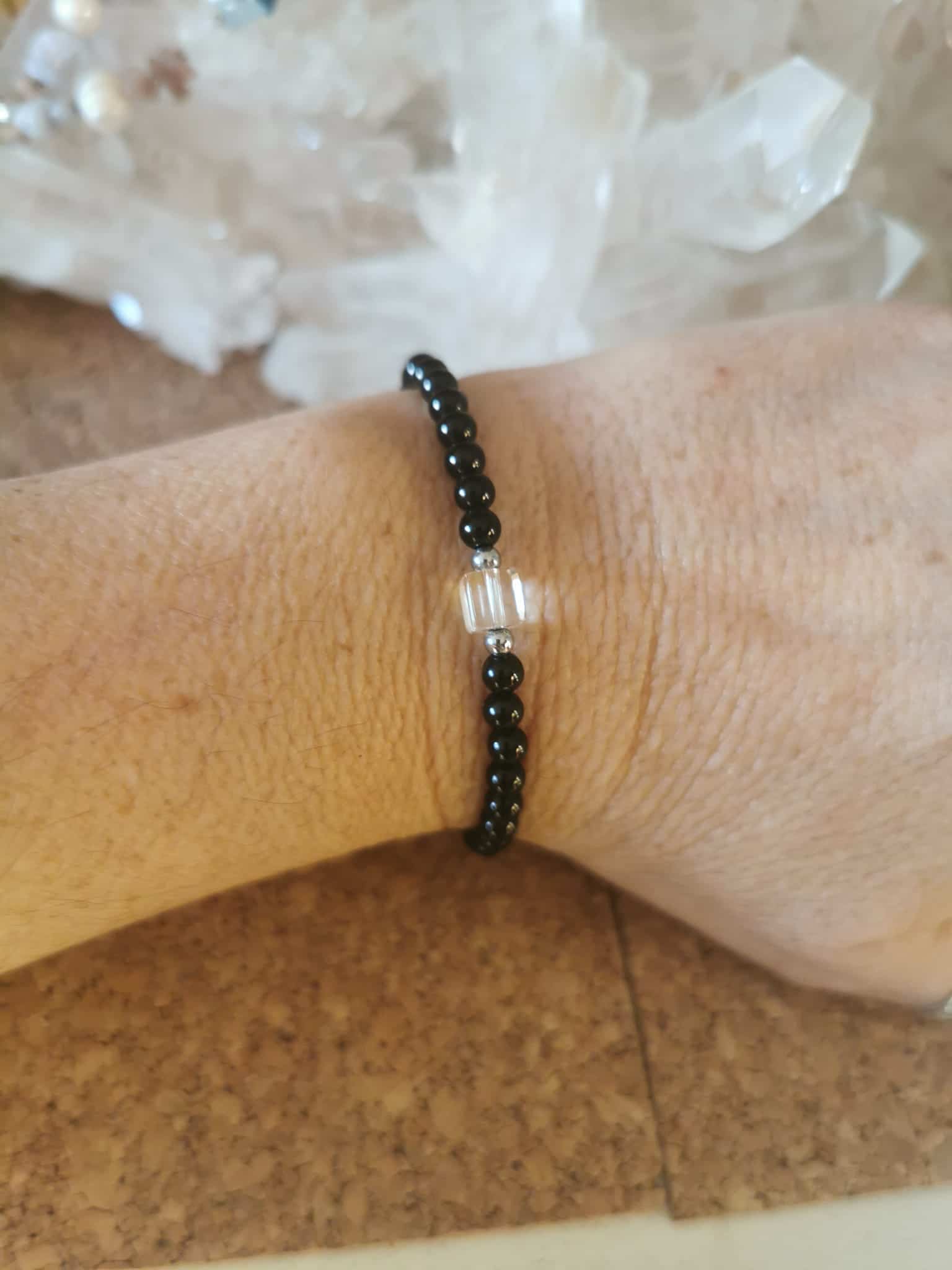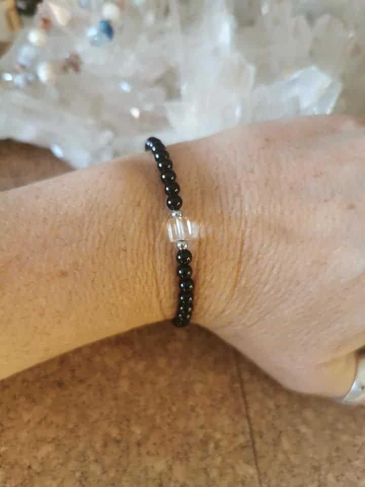 ❤️ Bracelet en Spinelle Noir et Cristal de Roche🔹