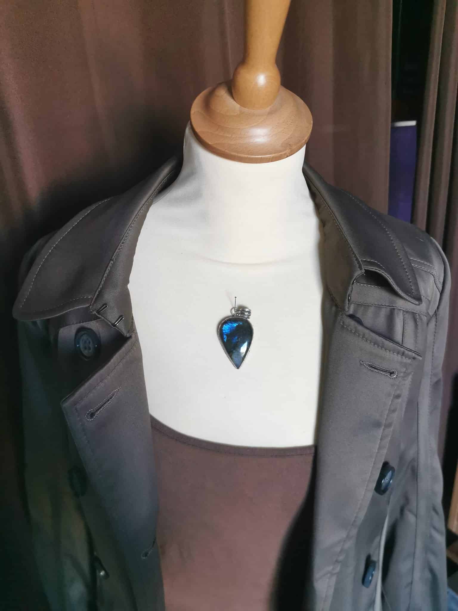 – La Labradorite aime beaucoup l’eau .Vous pouvez lui faire prendre un bain, de temps en temps, en la mettant dans l’eau une nuit .Si il y a du métal ,il vous faudra bien l’essuyer pour, garder la qualité du bijou .