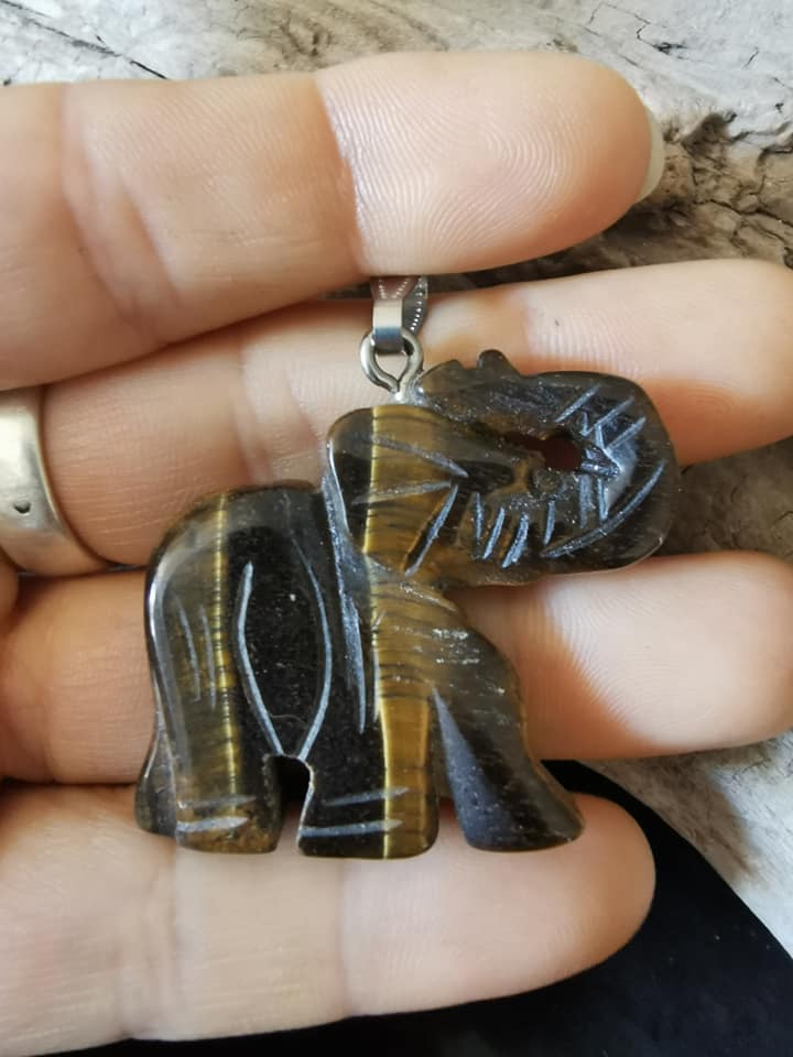 ❤️Pendentif Eléphant sculpté à la main en Oeil de Tigre 💎