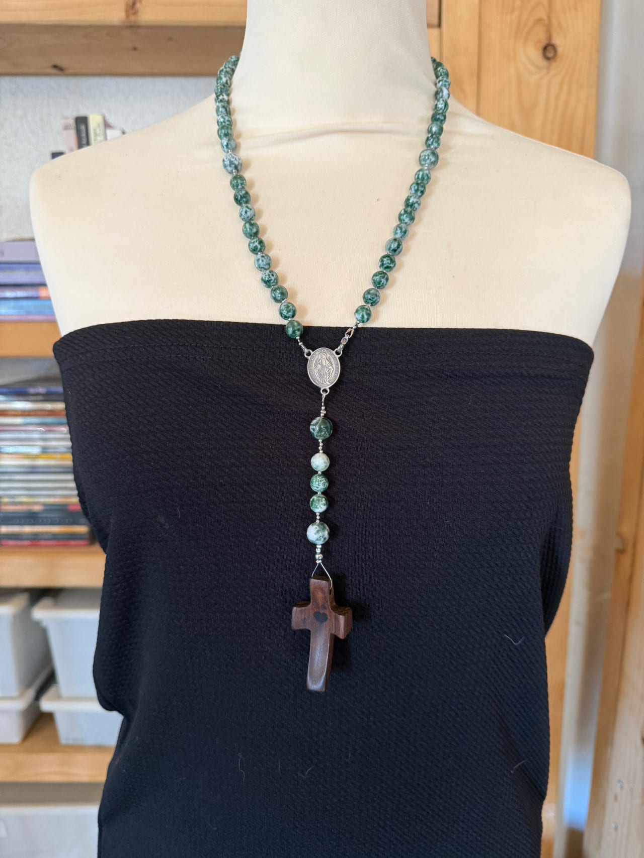 Chapelet Chrétien en perles d’ Agate Arborisée de 8 et 10 mm