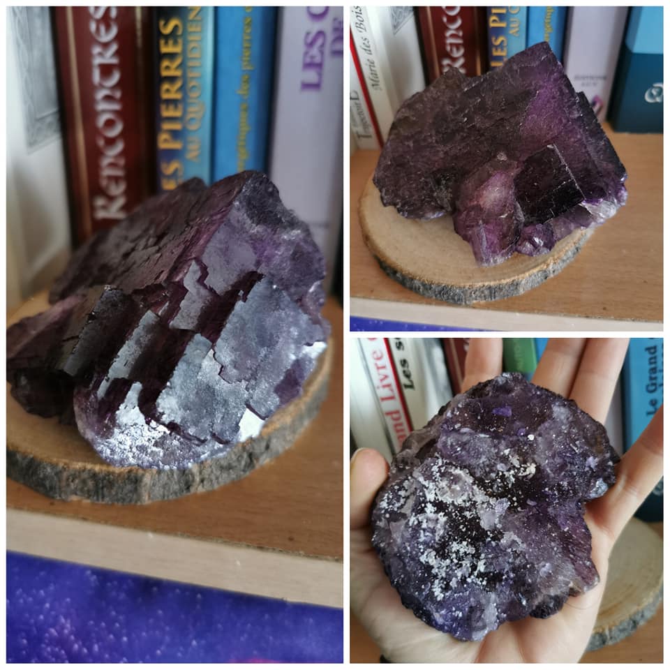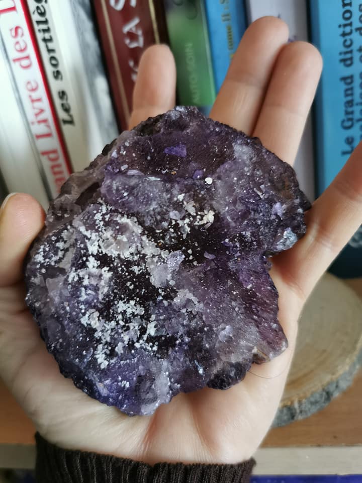 Vous pouvez également la poser sur une fleur de vie , la passer à l’encens .Evitez le sel direct et le Bol .La Dureté de la Fluorite est de 4 et le son risquerai de la fendre .Ce serait dommage ..