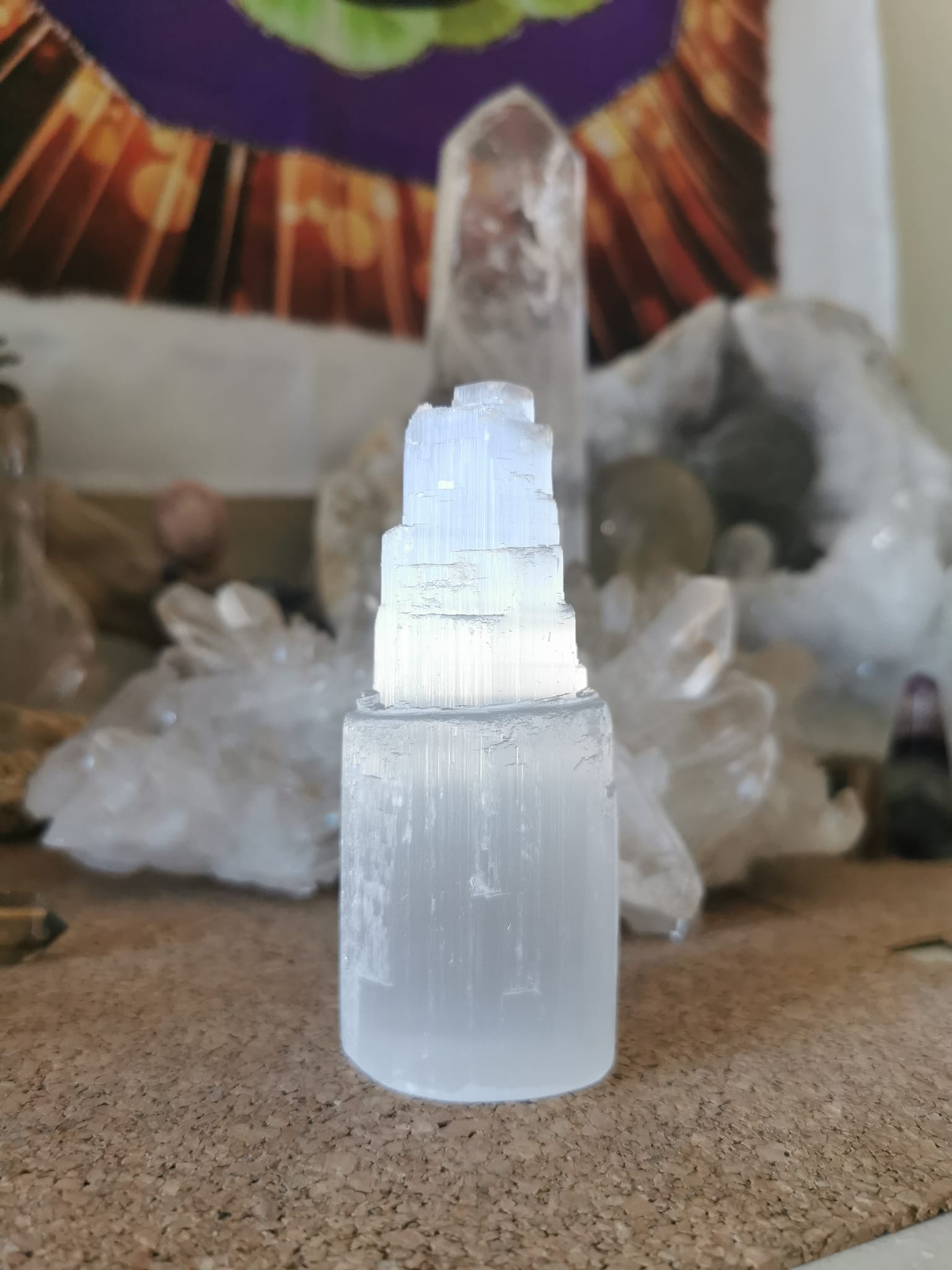 Une rumeur dit : Attention ,la Sélénite n’aime pas l’eau !! .. C’est faux . la Sélénite est composée d’eau et ,en a besoin pour ne pas se déshydrater .La Sélénite étant un Gypse fibreux ,elle n’aimera pas le calcaire de l’eau qui , rentrera dans les fibres ,cristallisera dans la pierre et , finira par la fendre . ,Pour faire fondre un bloc de Sélénite , Il faudrait laisser la pierre tremper pendant 30 ans