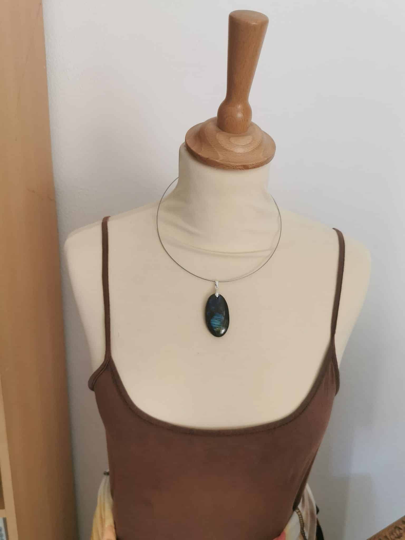 Pendentif en Labradorite et bélière en Acier inoxydable .
