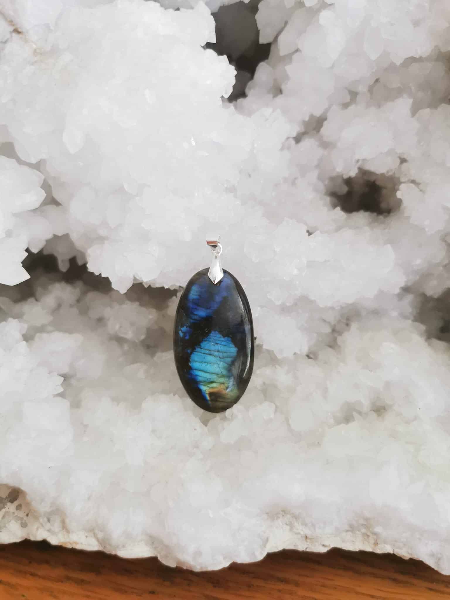– La Labradorite aime beaucoup l’eau .Vous pouvez lui faire prendre un bain, de temps en temps, en la mettant ,une nuit ,dans l’eau déminéralisée .La bélière ne craindra pas l’eau puisqu’elle est en Acier .Bien essuyer avec un chiffon doux .