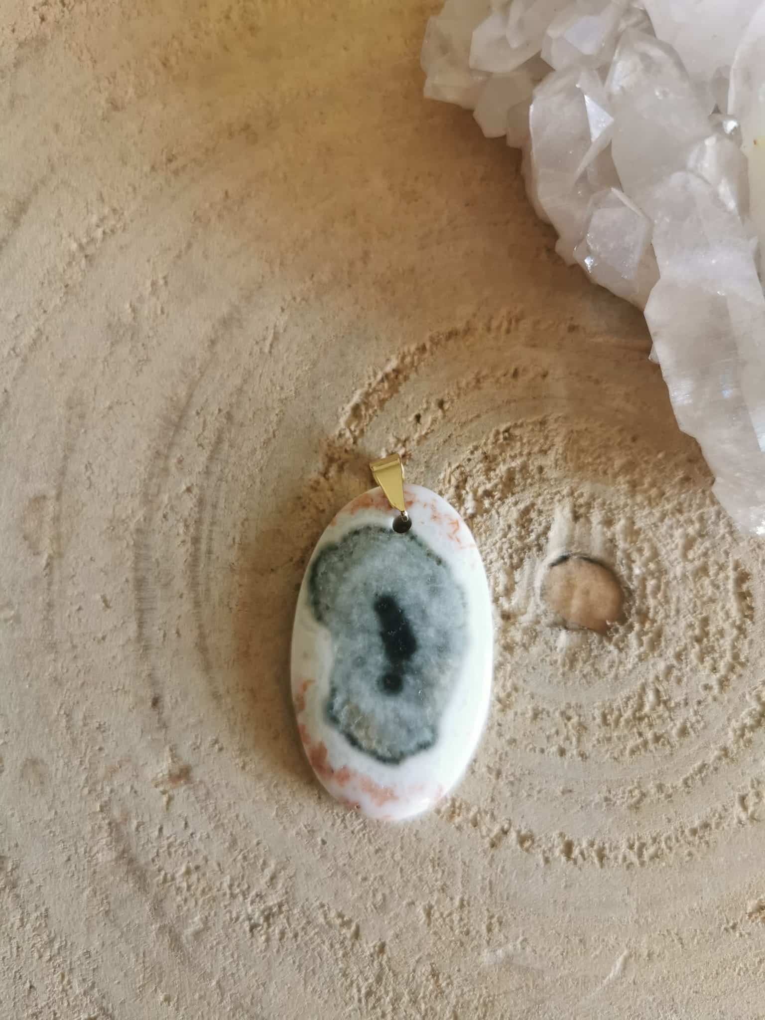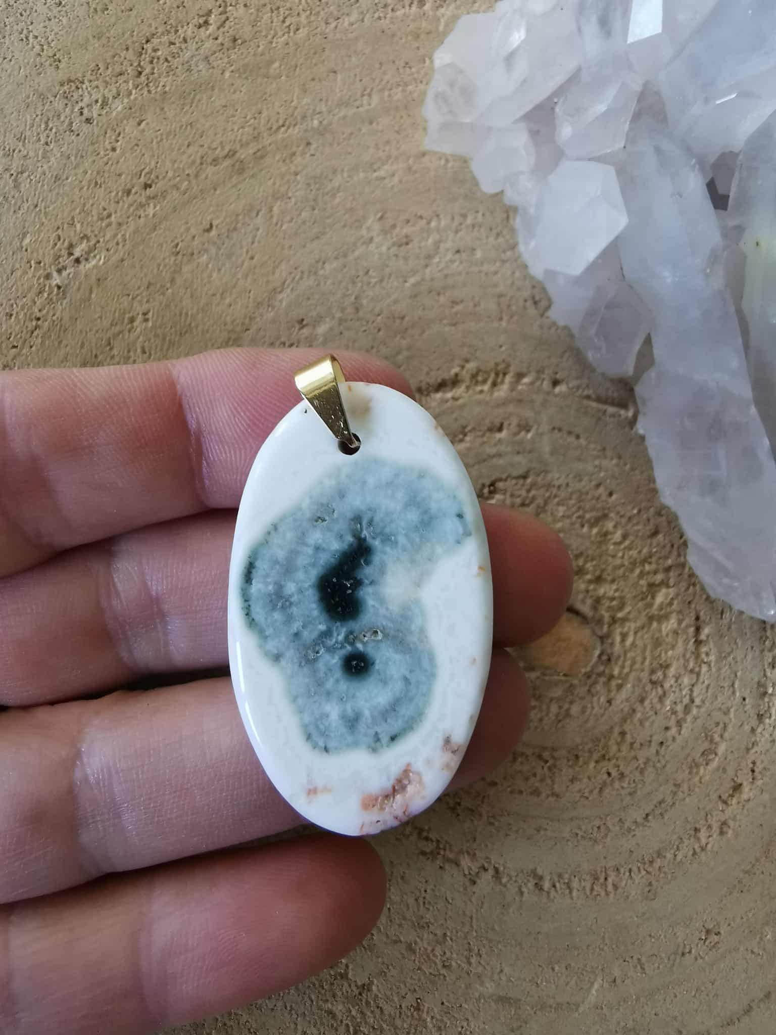 Pendentif Tranche de Stalactite de Quartz Solaire a inclusion de Chlorite